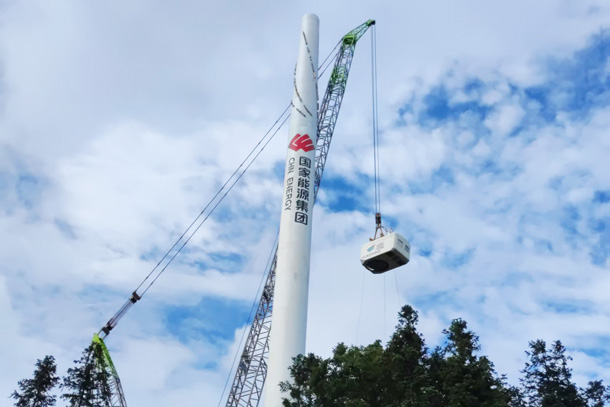 图为龙源电力开展风电设备吊装