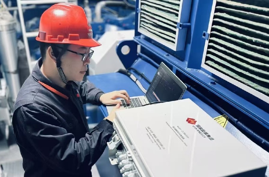 图为技术人员现场调试风机电控系统