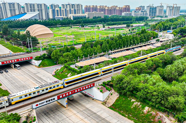 图为朔黄铁路重载铁路智能综合检测车进行作业
