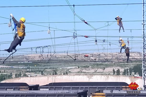 7月1日,国家能源集团包神铁路包神公司完成敖包沟站接触网软横跨更换施工。