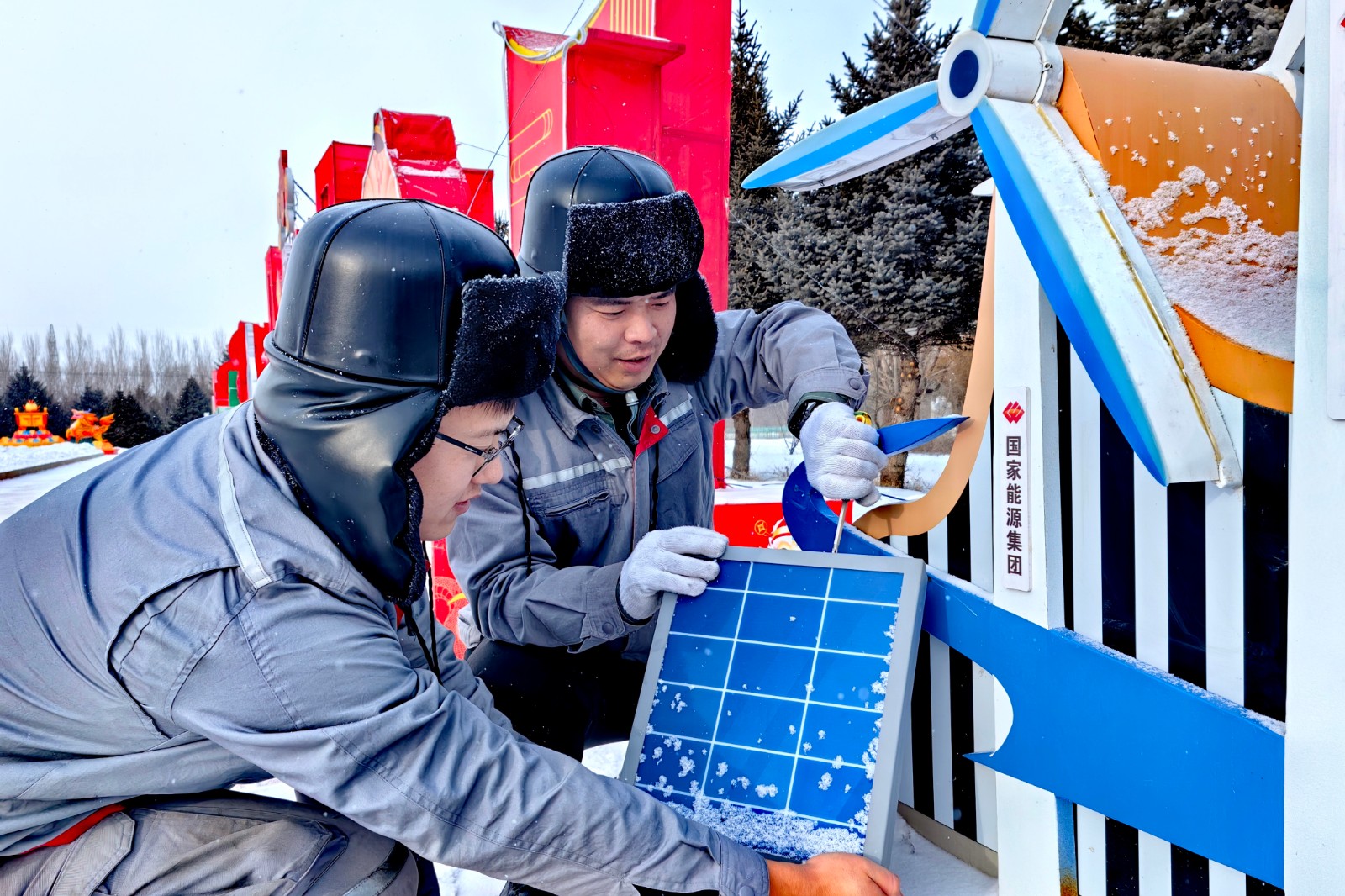 晌午时分,三座花灯全部安装完成,工完料净场地清,收起了工具包,检修班长马冬冬将手套下冻得通红的双手揣进了口袋里,欣慰地感慨道:“接下来,就静候‘花开’了,咱们先回去准备巡线去。”