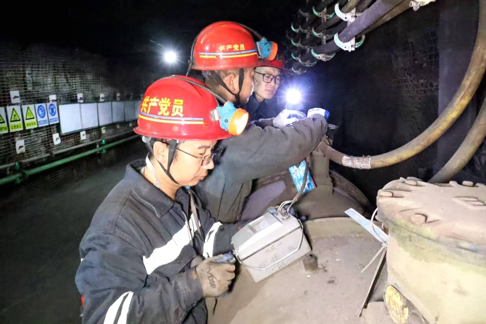 010911掘进工作面里,检修班组的全体职工各司其职,分工合作,检查隐患、排除故障,精细认真地做好掘进设备的检修维护保养工作。