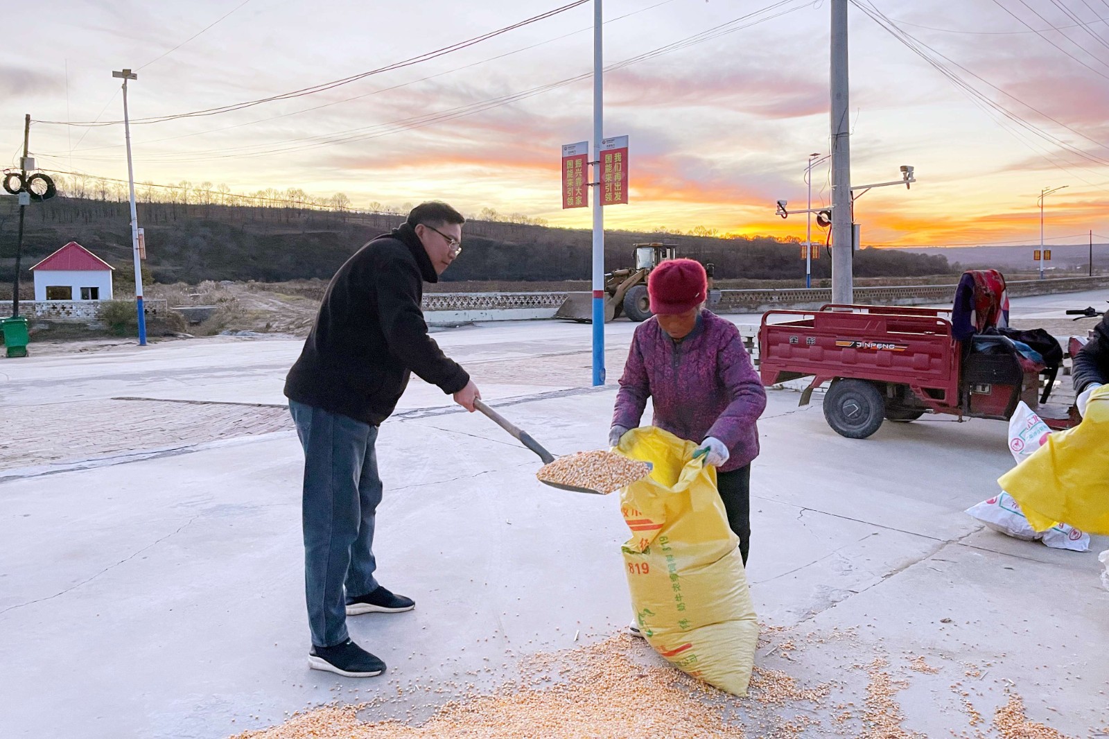 春天,风沙裹着泥土,团队成员挽着裤腿、踩着泥泞,帮老人点种覆膜;秋天,玉米成熟待收,他和同事们一起凌晨下地,收割、搬运、晾晒,忙到深夜才收工。“粮食是老人家的命根子,帮他们把粮食收回家,再累也值得!”汗水浸湿了工装,却浇热了与村民的鱼水情。